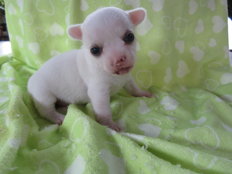 ขายชิวาวาขนสั้นสีขาวเพศเมีย อายุ 1 เดือน ราคา 7500-15000