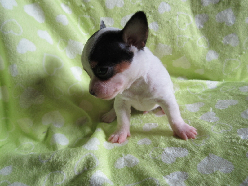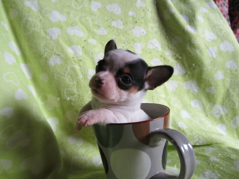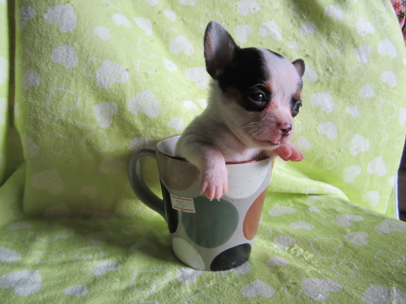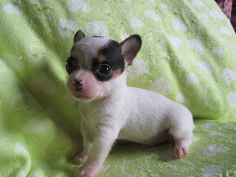 ขายชิวาวาขน2ชั้นเพศผู้ สีขาวดำน้ำตาลมีคิวอายุ 1 เดือน ราคา 7500