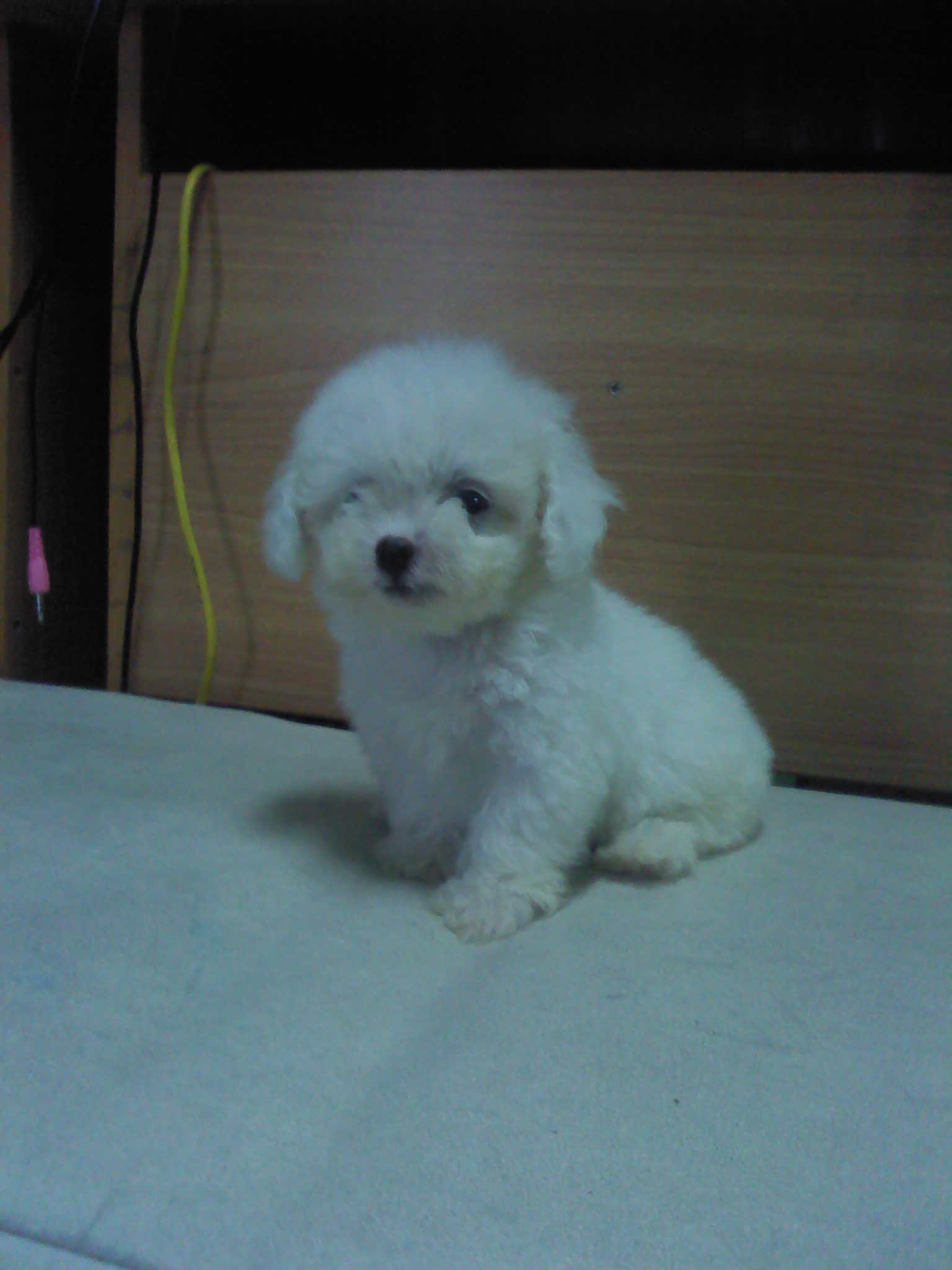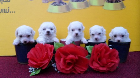 คอกที่สอง ตัวเมีย 1 สีขาวล้วนไซค์ t-cup (สูงไม่เกิน 6-8 นิ้ว) 20,000 บาท รวมค่าส่งมารับเองลดได้ เกิด 24/6/55 น้ำหนักตอน 50 วัน ชั่งได้ 0.50 กิโลกรัม (พ่อ 8 นิ้ว, แม่ 6 นิ้ว)