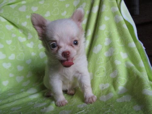 ขายชิวาวา ขนยาว สีขาวครีม เพศเมีย เดือนครึ่ง โทร 0822513043