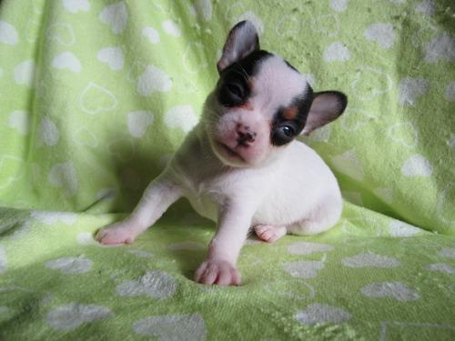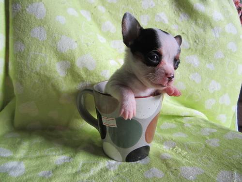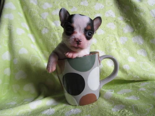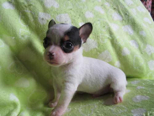 ขาวชิวาวา ขนสั้น เพศผู้ สีขาวดำแต้มคิวน้ำตาล โทร 0822513043