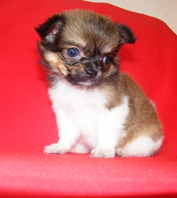 [b][color=orange][size=18pt][font=comic sans ms]น้องชิวาวาขนยาว เพศเมีย แฟนซี สีน้ำตาล-ขาว ไซด์เล็ก อายุ 48 วัน