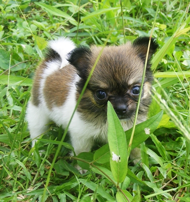 [b][color=maroon][size=18pt][font=andale mono]น้องชิวาวาขนยาว เพศเมีย แฟนซี สีน้ำตาล-ขาว ไซด์เล็ก อายุ 48 วัน