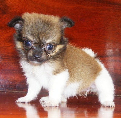 [b][color=limegreen][size=18pt][font=verdana]น้องชิวาวาขนยาว เพศเมีย แฟนซี สีน้ำตาล-ขาว ไซด์เล็ก อายุ 48 วัน