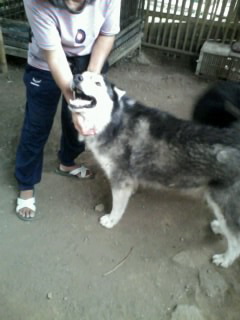 รูปที่ 3-4 พ่อพันธุ์ไซบีเรียกับแม่พันครับ พ่อน้ำหนัก 35 ก.ก แม่น้ำหนัก 23 ก.ก