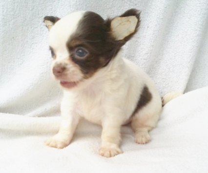 มีหนุ่มน้อยชิวาวา ขนยาว สีขาว-ช๊อค เพ็ดเต็มใบค่ะ