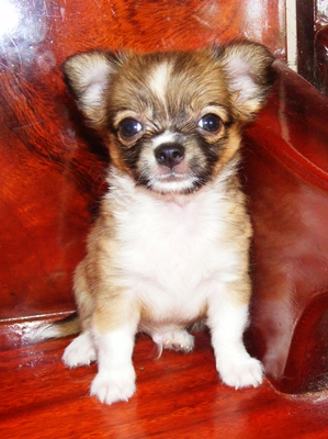 +++ ชิวาวาขนยาว เพศผู้ แฟนซี น้ำตาล-ขาว ไซด์เล็ก หัวสวย ++++++