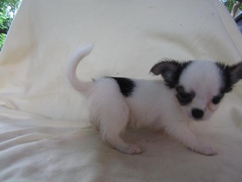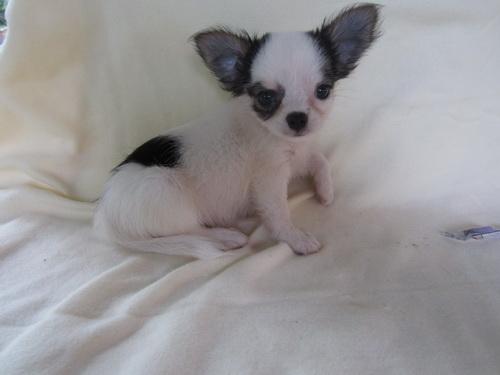ขายชิวาวาขนยาวเพศเมียสีขาวดำลายเเพนด้าพร้อมวัคซีน 1 เข็ม ราคา 10000 นครปฐม 082-2513043