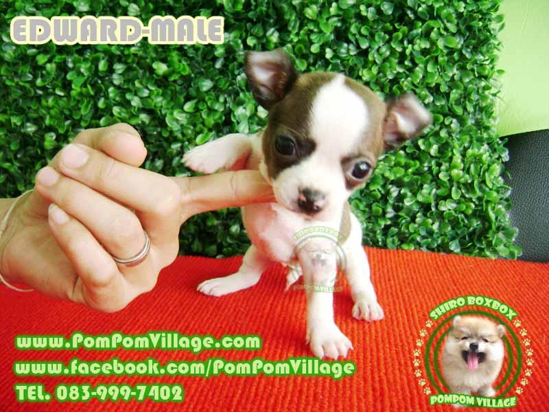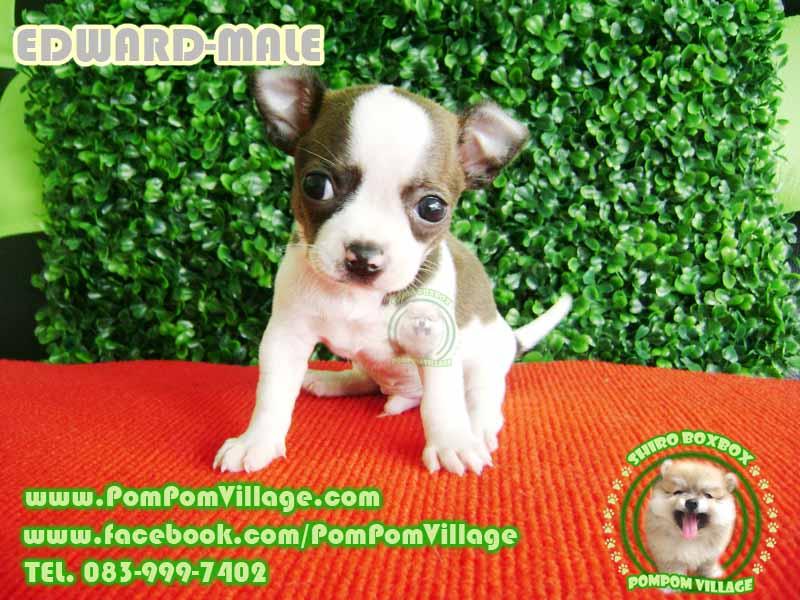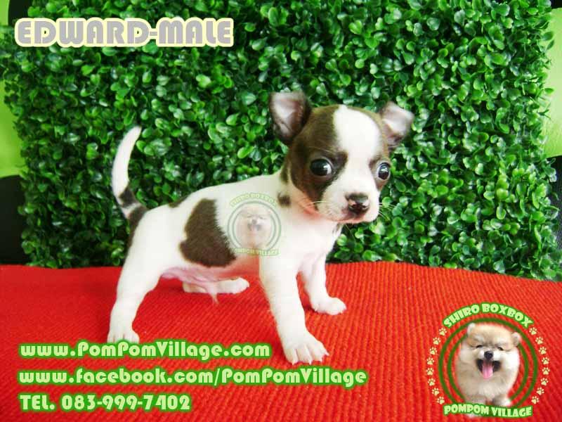 น้องเอ็ดเวิร์ด ชิวาวาสายญี่ปุ่น สีขาว-น้ำตาลอมช็อค