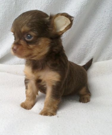 มีชิวาวาเพศผู้ ขนยาว สีช๊อค-แทน เพ็ดดีกรีเต็มใบ ค่ะ