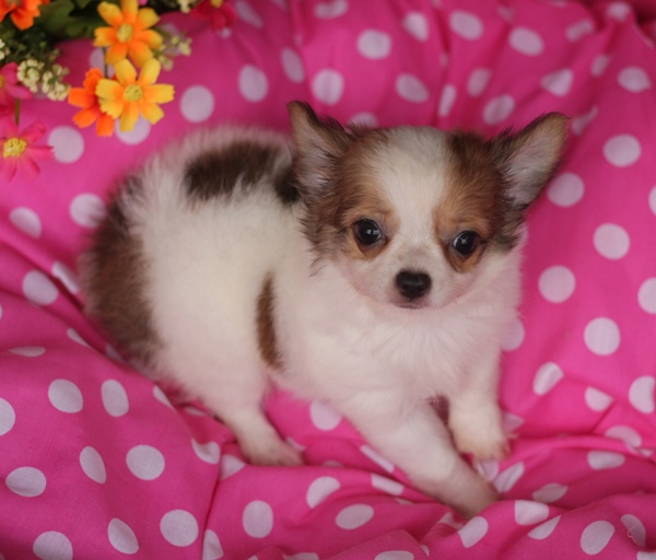 ชิวาวาขนยาวหนานุ่ม สีแฟนซี มาร์คกิ้งสวย พร้อมใบเพ็ด ราคาถูก!!!