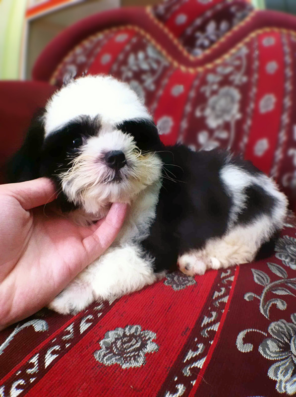 น้องบลาเวีย ชิสุห์เพศเมีย ขนาดทอยส์ อายุ 3 เดือน สีขาวดำ ลายแพนด้า น่ารัก ซุกซน ขี้อ้อน กินเก่ง