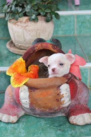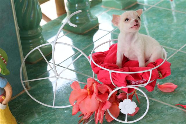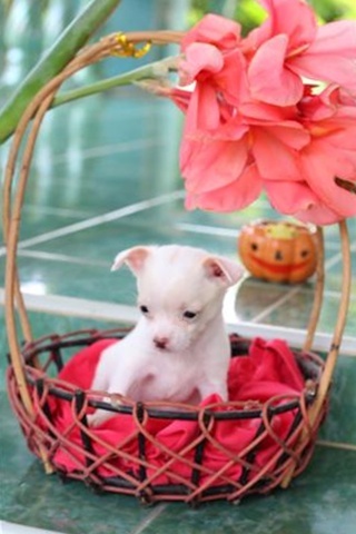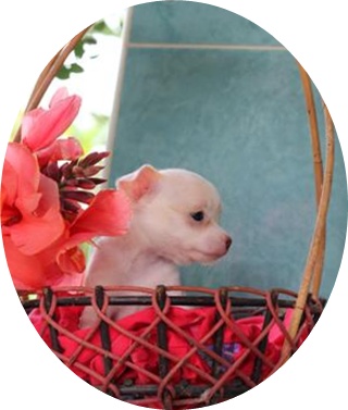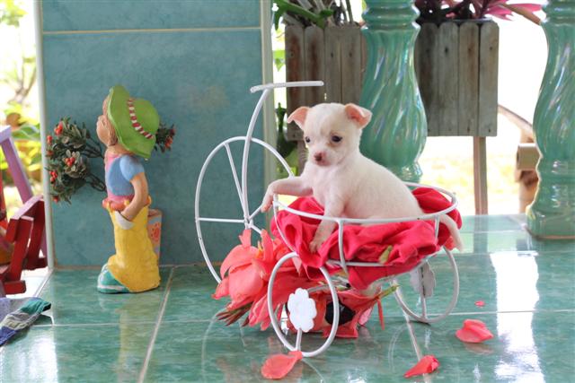 ขายชิวาว่า เพศเมีย สีขาวแต้มครีมที่หน้าอ่อนๆ หัวแอ๊ปเปิ้ล หน้าสั้น ใส่ถุงเท้า4ข้างหางดอก(ตามตำรา)