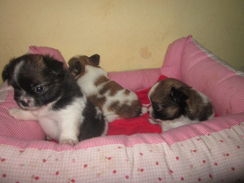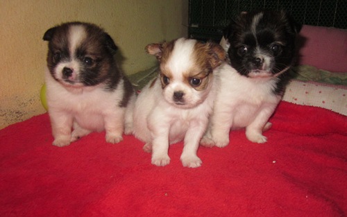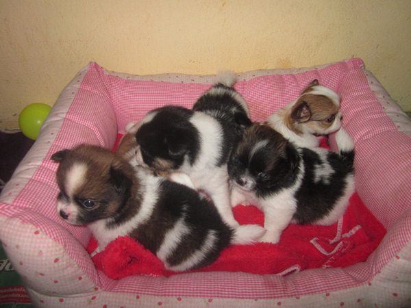 ชิวาวา ขนยาว 6 ตัว ชาย หญิง พ่อแม่นำเข้าสายได้หวัน ตอนนี้อายุ 30 วันแล้ว