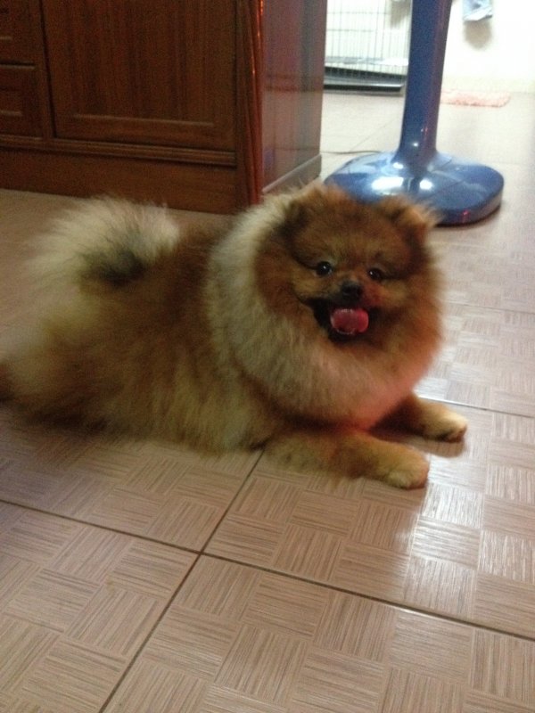 สีส้มเข้ม ขนแน่นมากสองชั้น หูเล็ก เท้าใหญ่ หน้าหมี สุขภาพแข็งแรง นน. 2.5 กก.