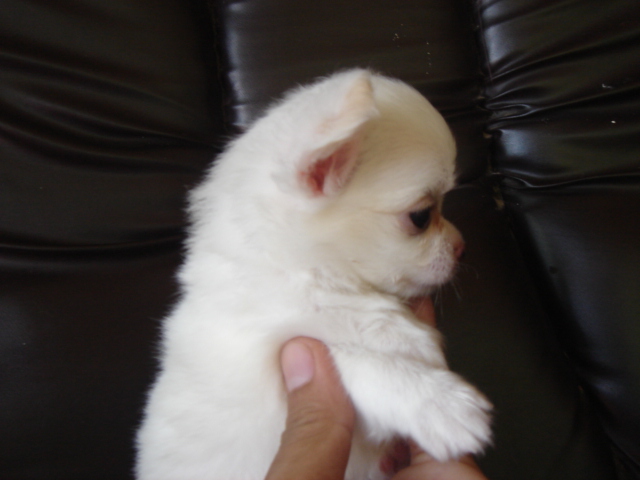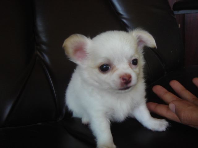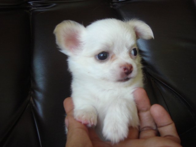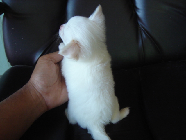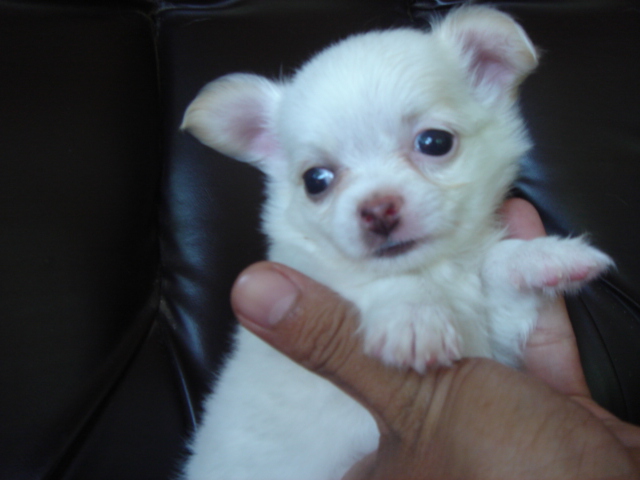 ชิวาวาขนสั้นยาวขาวจั๊ว หัวแอปเปิ้ลแท้ ปากสั้น สวยจริง ถูกมาก พ่อแม่นำเข้า เป็นสุนัขบ้านค่ะ 7500.ต่อรองได้ค่ะ