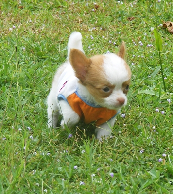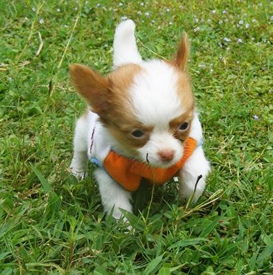 ขายชิวาวาขนยาว เพศผู้ แฟนซี ขาว-ส้ม มาร์คสวย ราคาไม่แพง