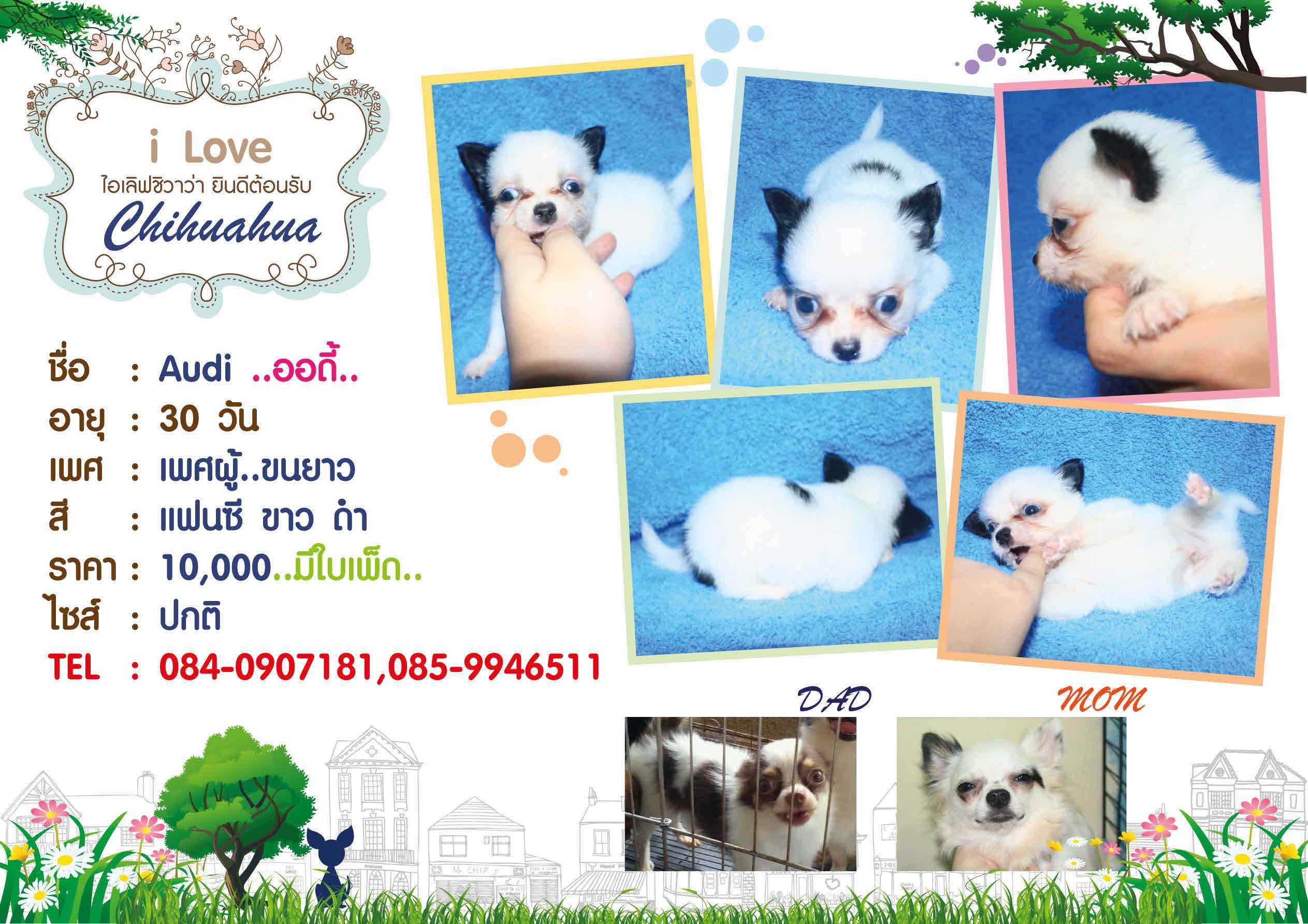 <<น้องออดี้ ชิวาวาขนยาวมาร์คเท่ มีรูปพ่อแม่ มีใบเพ็ด ลดราคาพิเศษค่ะ>