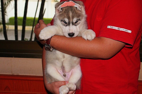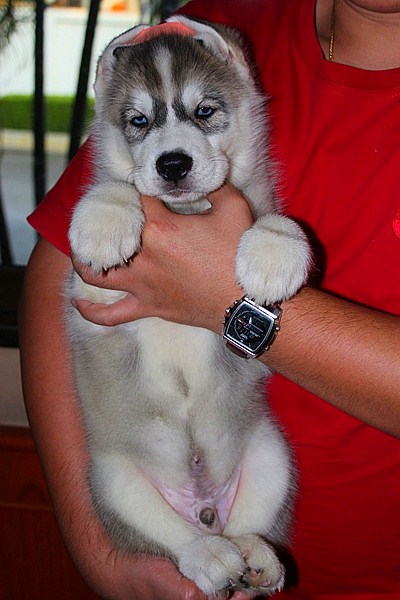 จำหน่ายลูกสุนัข ไซบีเรียน ฮัสกี้ เพศผู้ 1 ตัว ตาฟ้าทั้งสองข้าง สายพันธุ์ดี โครงสร้างใหญ่ ลักษณะดี มีถุงเท้าทั้ง 4 ข้าง หางยาวปลายหางขาว ขาใหญ่ เกิดวันที่ 25 สิงหาคม 2555 อายุ 50 วัน ภาพถ่ายปัจจุบัน ขนแน่นฟู ตัวจริงน่ารัก ขี้เล่น ทานอาหารเก่ง เลี้ยงง่าย สุขภาพร่างกายแข็งแรง พ่อแม่ภาพสุดท้ายค่ะ สุนัขเป็นสุนัขบ้านค่ะ สนใจสามารถเข้ามาชมน้องได้ค่ะไม่ซื้อไม่ว่ากันค่ะ สอบถามข้อมูลน้องเพิ่มเติมได้ค่ะ