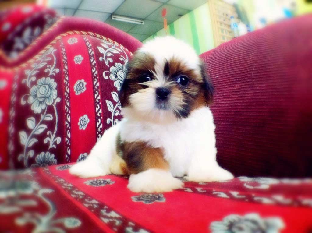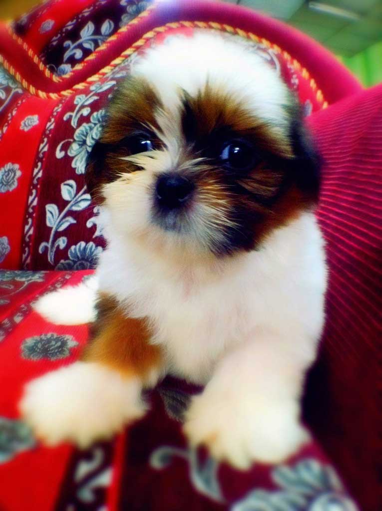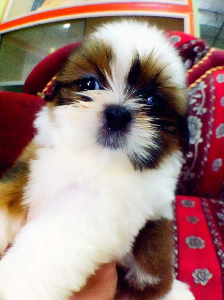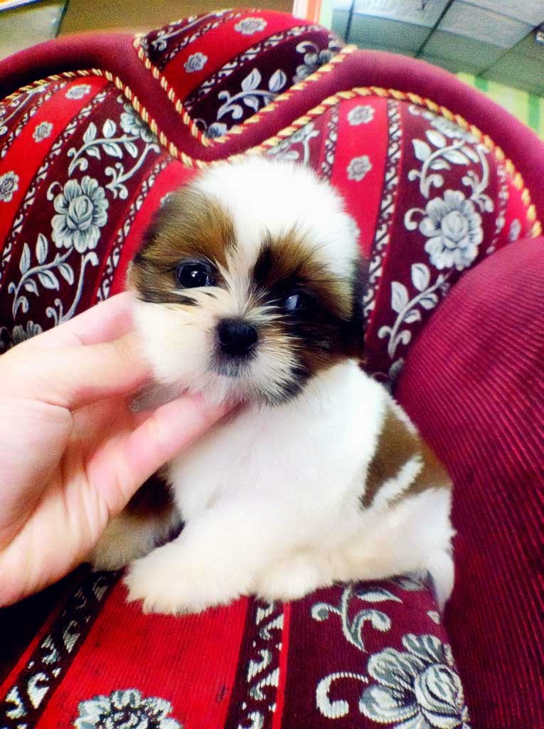 น้องยูเมะ ชิสุห์เพศเมีย สีขาว+โกโก้ ใส่สนับเข่าขาหน้าข้างขวา มาร์คกิ้งสวย ฟอร์มสวย สายพันธุ์ชิสุแท้ 100% ราคากันเองจ้า