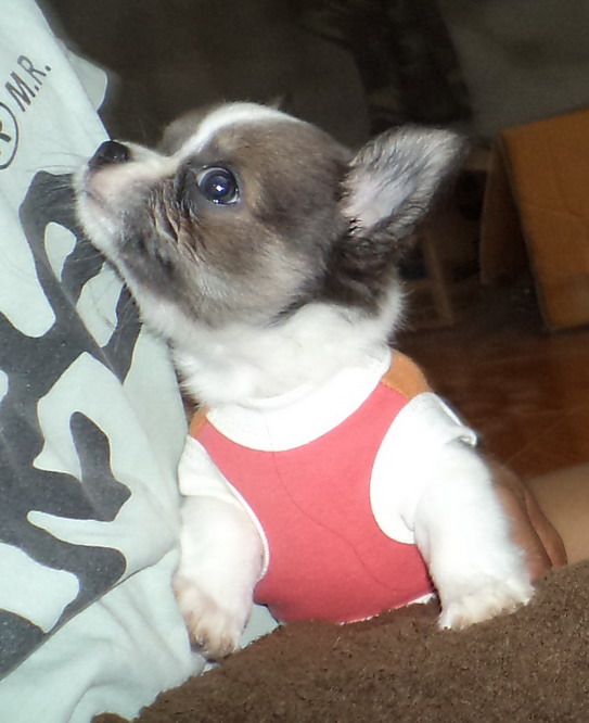 ลูกชิวาวาขนยาว เพศผู้ สีขาว-เทา เกิด 16 ส.ค.55 มี ใบโอน+ใบเพ็ดจากสมาคมฯ (เจ้าของใหม่สามารถตั้งชื่อในใบเพ็ดได้นะครับ) แม่เป็นลูก TH.CH.สุขภาพแข็งแรงกำลังซน ขี้เล่น น่ารักมากๆ กินอาหารเม็ด + ถ่ายพยาธิ แล้ว ราคาพิเศษสำหรับคนรักชิ สนใจ ลองโทรมาคุย กันครับ (สุนัขอยู่น่าน ตจว.นัดวันส่งได้) ในรูป...ถ่ายตอนอายุได้ 60 วันTel. 082-7609665, 0898504626