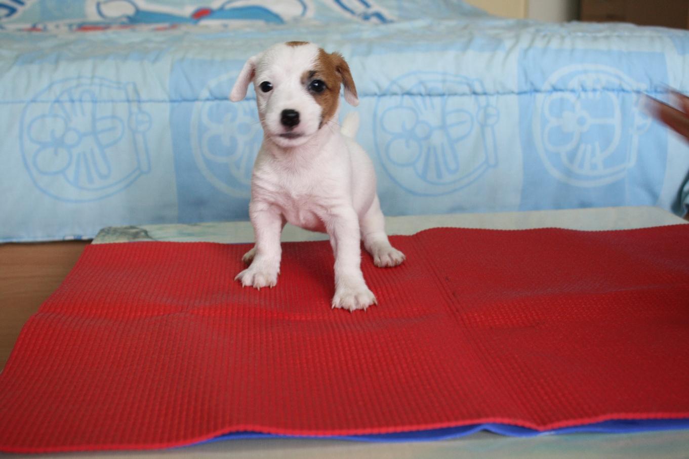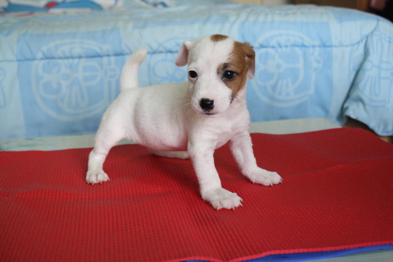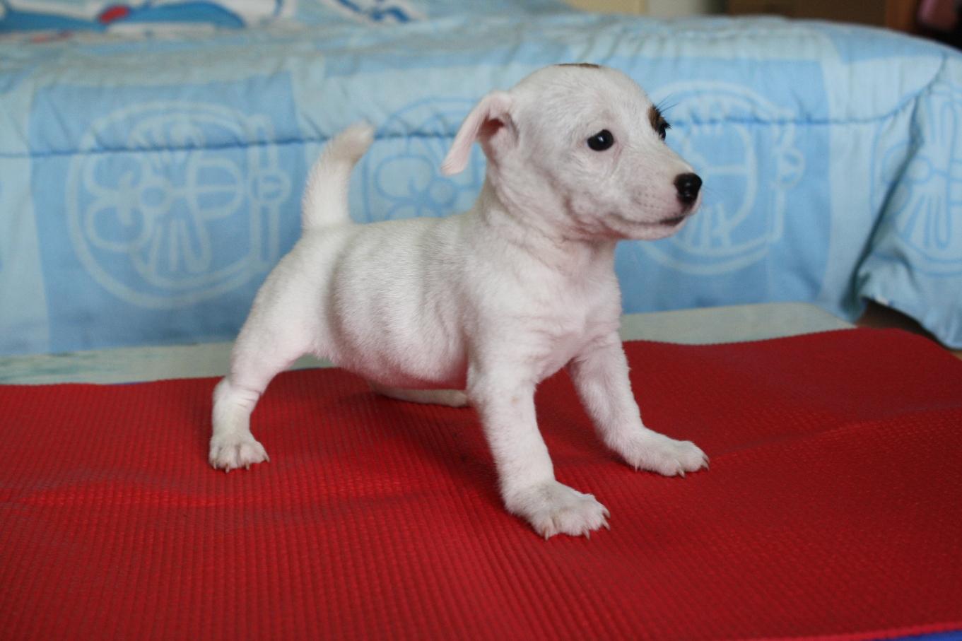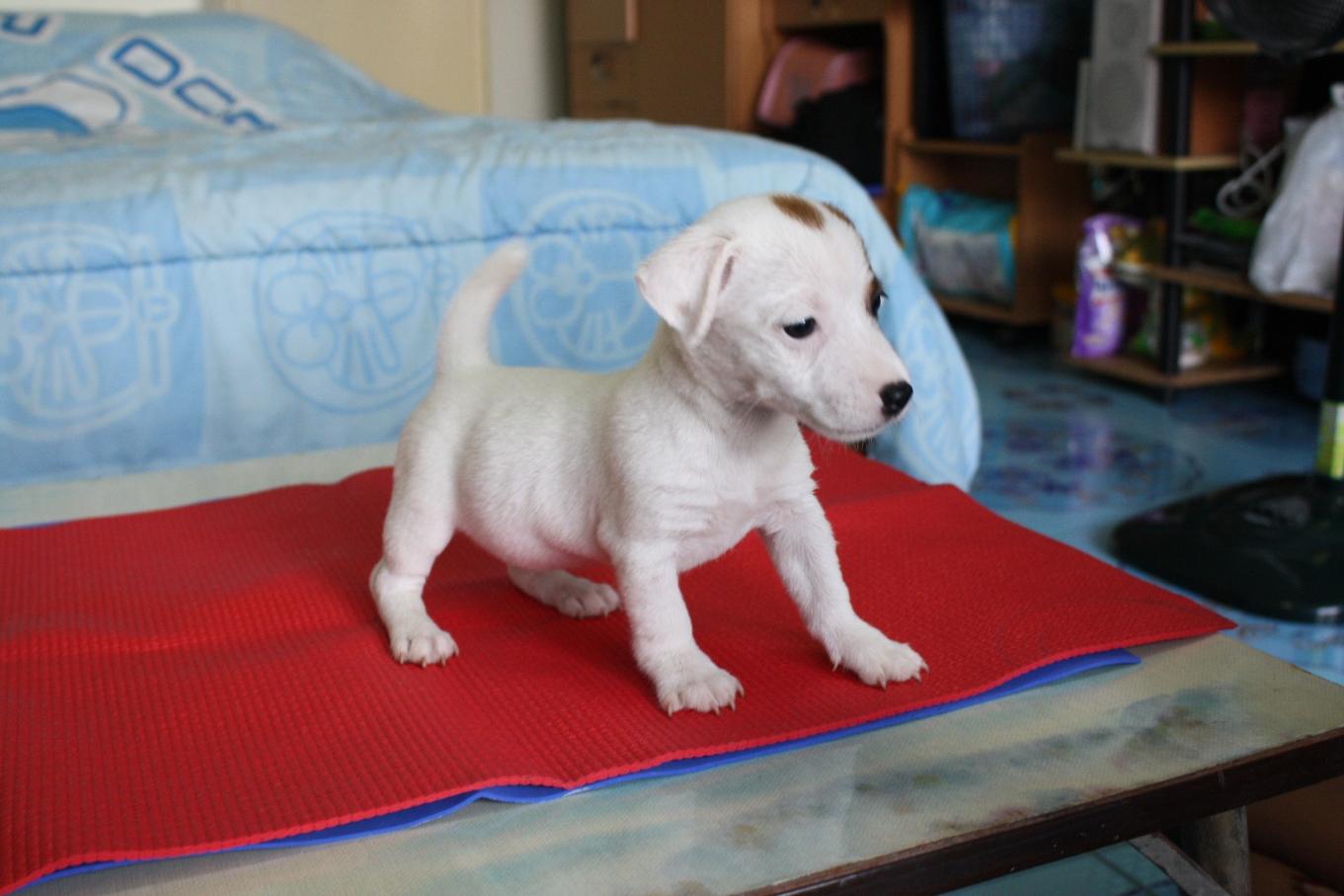 ขายลูกแจ็รัสเซลเพศเมีย1ตัวโม่เช่พื้นขาวทั้งตัว สายเลือดดีค่ะ ราคา4,500 สอบถามได้ค่ะ