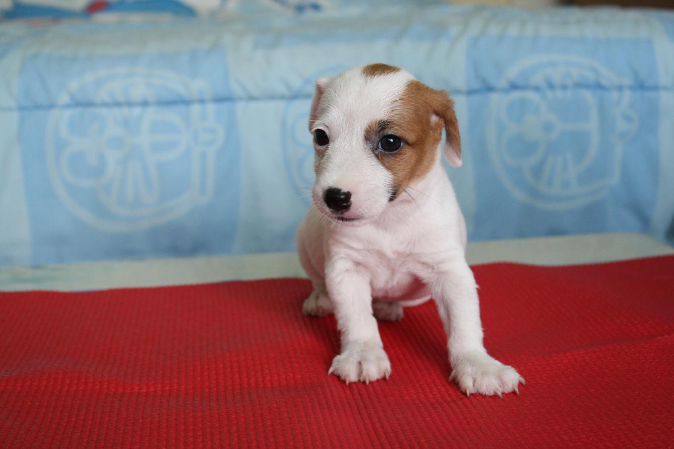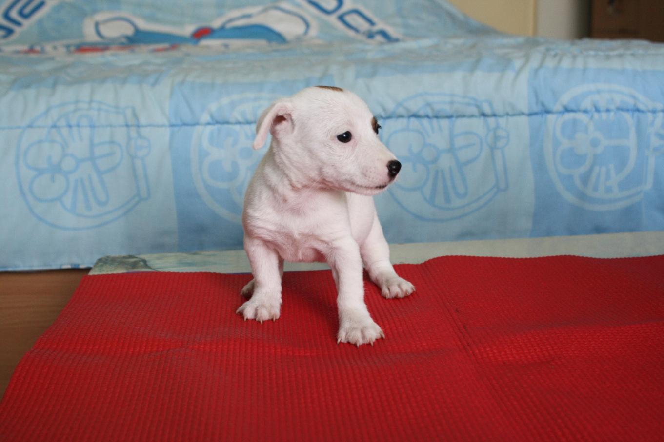 ขายลูกแจ็รัสเซลเพศเมีย1ตัวโม่เชพื้นขาวทั้งตัว สายเลือดดีค่ะ ราคา4,500ค่ะสอบถามได้ค่ะ