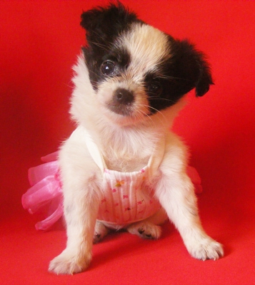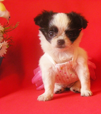น้องชิวาวาขนยาว เพศเมีย แฟนซี สีขาว-ดำ ตัวจิ๋ว อายุ 44 วัน