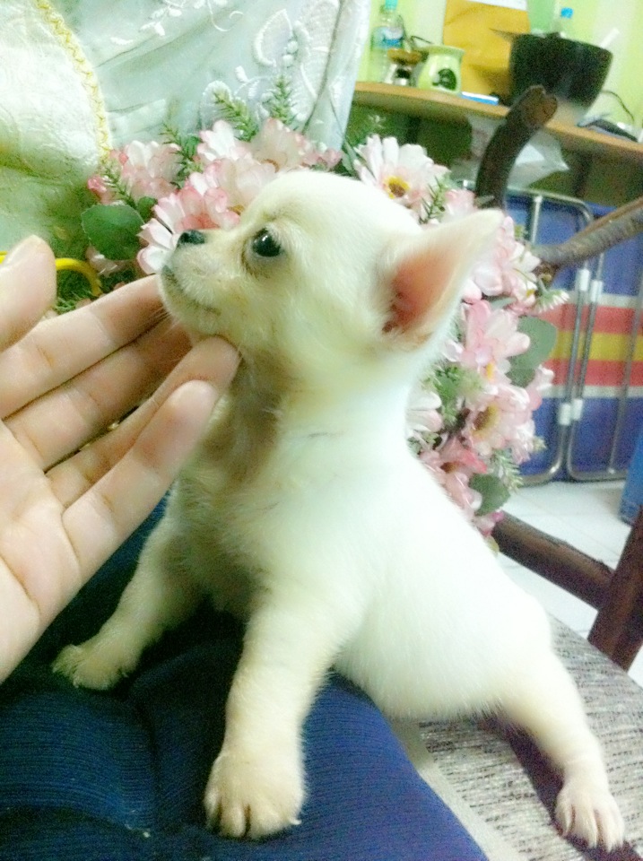 อาเทอร์ชิวาวาสีขาวล้วนผู้ขนยาวไซด์เล็กจิ๋วฟอร์มแจ่มอย่าพลาดนะคร้าบ