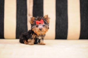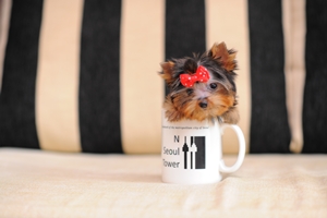 Yorkshire Terrire puppy available now, he is "Teacup" size and was born from Teacup dad and Toy mom, good coat, short legs, babydoll face and compact body.