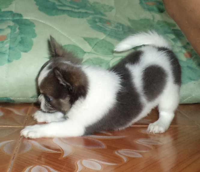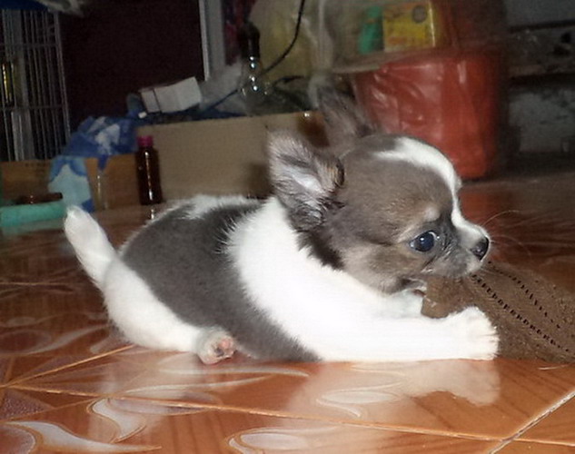 ลูกชิวาวาขนยาว เพศผู้ สีขาว-เทา เกิด 16 ส.ค.55 มี ใบโอน+ใบเพ็ดจากสมาคมฯ (เจ้าของใหม่สามารถตั้งชื่อในใบเพ็ดได้นะครับ) แม่เป็นลูก TH.CH.สุขภาพแข็งแรงกำลังซน ขี้เล่น น่ารักมากๆ กินอาหารเม็ด + ถ่ายพยาธิ+ทำวัคซีนแล้ว ราคาพิเศษสำหรับคนรักชิ สนใจ ลองโทรมาคุย กันครับ (สุนัขอยู่น่าน ตจว.นัดวันส่งได้) ในรูป...ถ่ายตอนอายุได้ 60 วันTel. 082-7609665, 0898504626