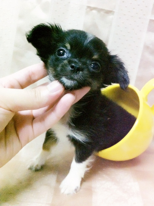 Vodgaชิวาวาขนยาวเพศผู้สีแบลคแทนแฟนซีไซด์จิ๋วราคาไม่แพง