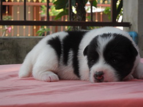 ขายลูกสุนัขบางแก้ว คอกเฮงๆ ^^ สีขาวดำค่ะ ตัวเมีย