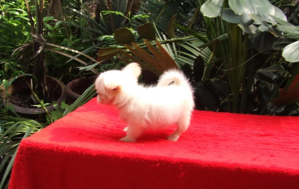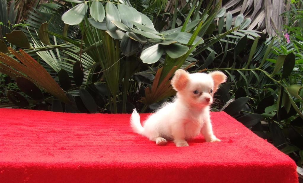 ชิวาวาเพศผู้ขนยาว สีขาวครีม ราคาเบา ๆ