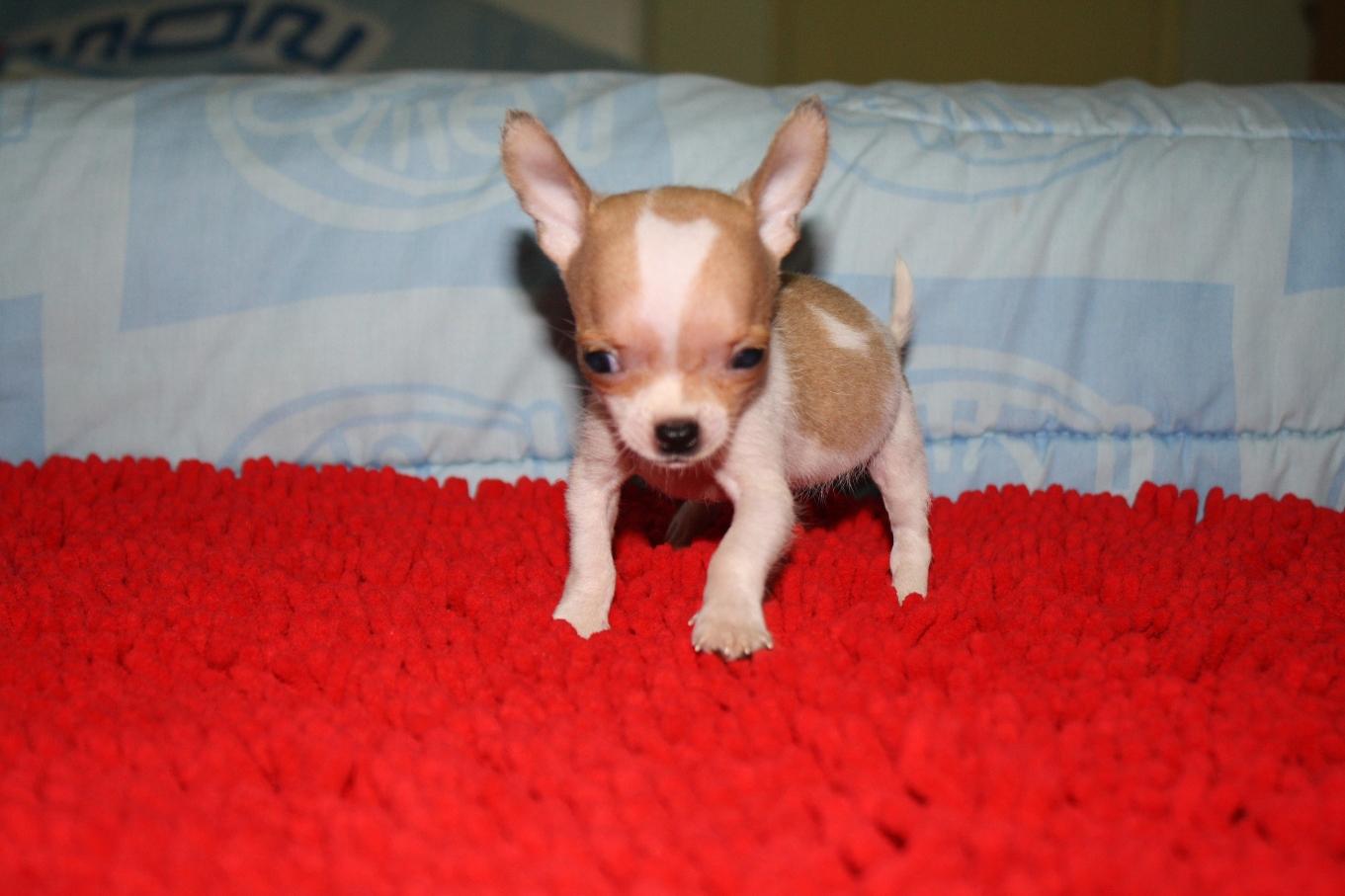 น้องข้าวตรัง ชิวาวาขนสั้นเพศผู้สีแฟนซี ไซส์ทีคัพแท้ๆค่ะ สายเลือดไต้หวันแท้100%ค่ะ