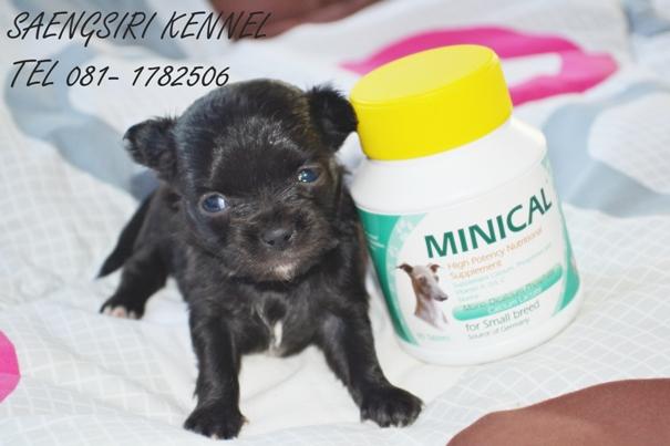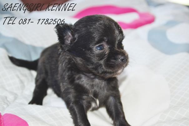 เปิดจอง ด.ญ.ข้าวสวย ชิวาวาขนยาว สีดำ อกขาว ไซต์เล็กมีใบเพ็ดจากสมาคม (8,500 บาท) โทร 081-1782506