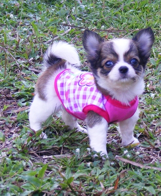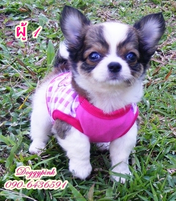 น้องชิวาวาขนยาว เพศผู้ 2 ตัว แฟนซี ขาว-น้ำตาล อายุ 2 เดือน ครึ่ง