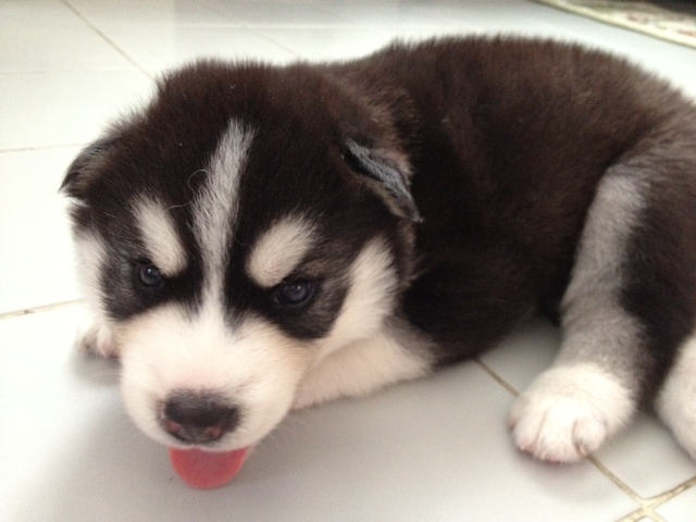 ขายลูกสุนัขพันธุ์ไซบีเรียน ฮัสกี้ สีเทา-ดำ ตัวผู้ แข็งแรง ขนฟู ปุกปุย น่ารัก 1 ตัว และ