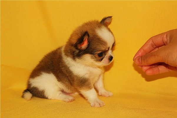 ชิวาวาขนยาว (ผู้) น้อง หมิงเทียน 9900 (ไซต์ทีคัพ) www.hkhappydogs.com เพ็ดเต็มใบค่ะ
