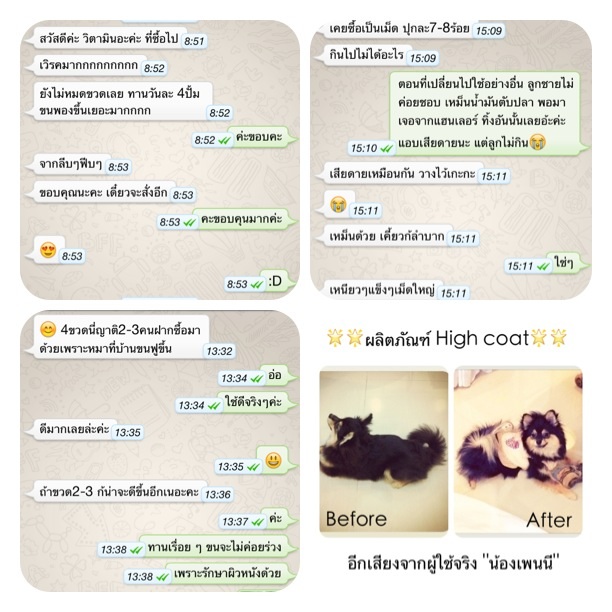 ผลิตภัณฑ์ High Coat อาหารเสริมบำรุงขนสุนัขพันธุ์ปอมเมอเรเนี่ยน หรือพันธุ์อื่นๆ