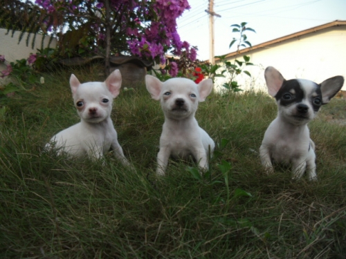 ชิวาวาขนสั้น สีแฟนชี ตามภาพเลยจ้า ไซต์เล็ก เพศผู้ 3 ตัว ตอนนี้อายุ 45 วัน หัวโต หน้าสั้นค่ะ ตากลมโต ตัวจริงน่ารัก ขี้เล่น ทานอาหารเก่ง เลี้ยงง่าย ถ่ายพยาธิแล้ว 1 ครั้ง สุขภาพร่างกายแข็งแรง พ่อแม่เป็นขนสั้นทั้งคู่ สุนัขเป็นสุนัขบ้านค่ะ สนใจ ติดต่อ 0871024877