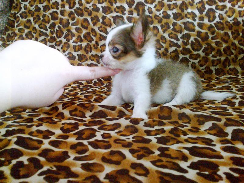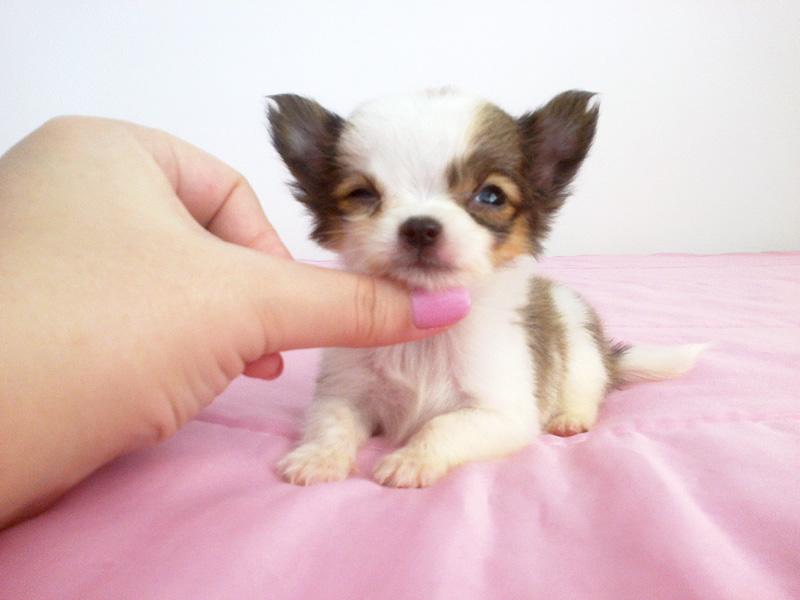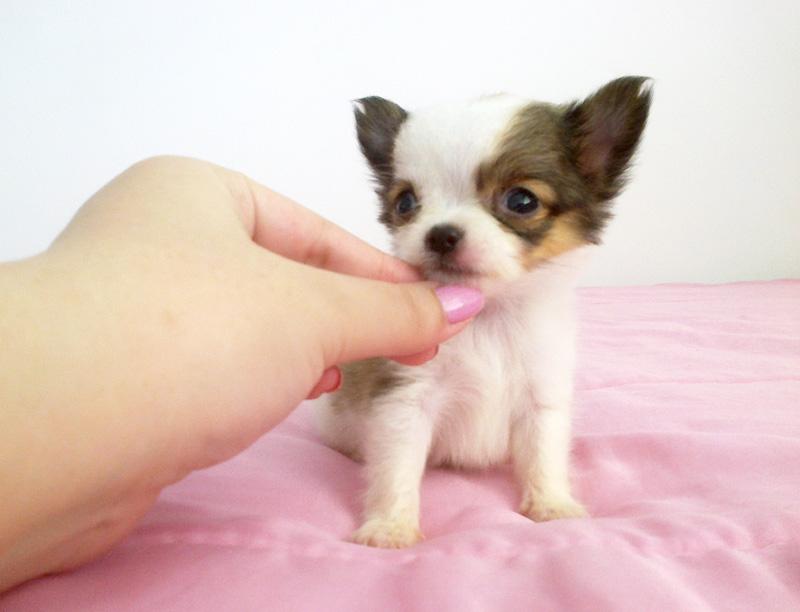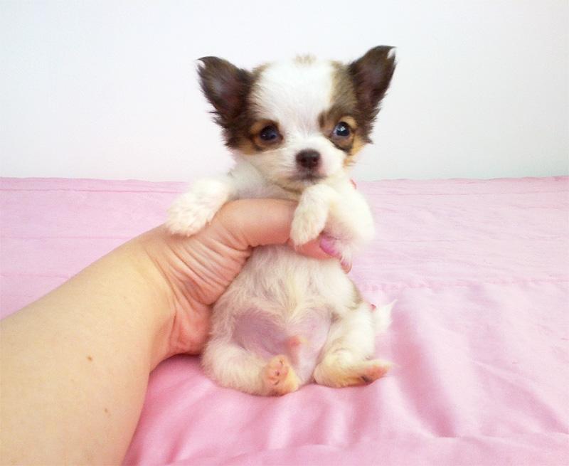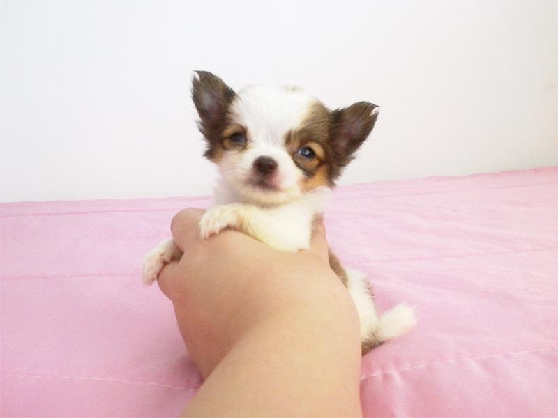 เด็กชาย เคลลี่ อายุ 2 เดือน ไซส์ทีคัพ ขนยาว สีแฟนซี ขาวน้ำตาล