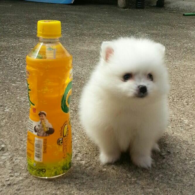 น้องปอมเพศผู้สีขาวสำลี หน้าสั้น ขนแน้นครับ
