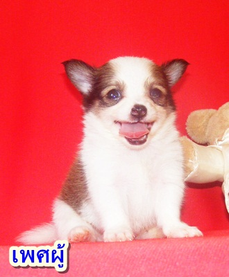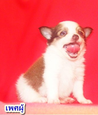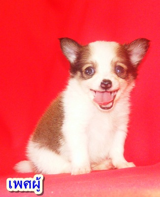 น้องชิวาวาขนยาว เพศผู้ แฟนซี ขาว-น้ำตาล อายุ 40 วัน ไซด์เล็ก
