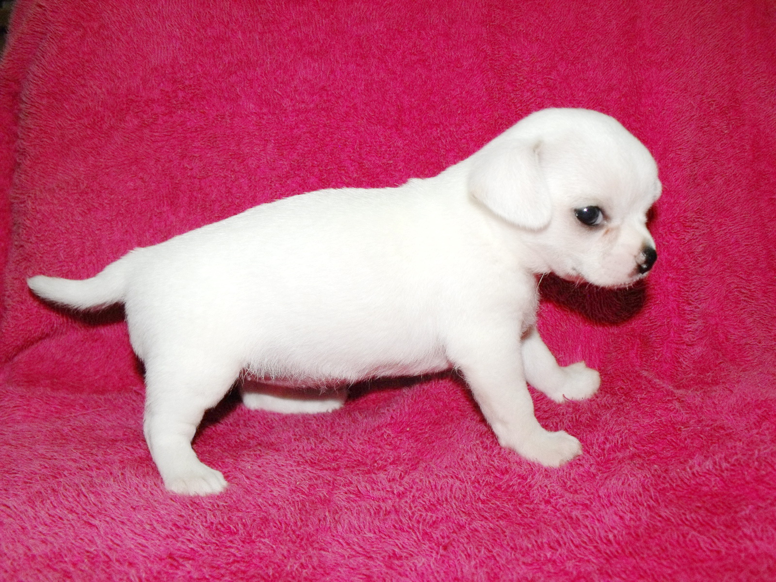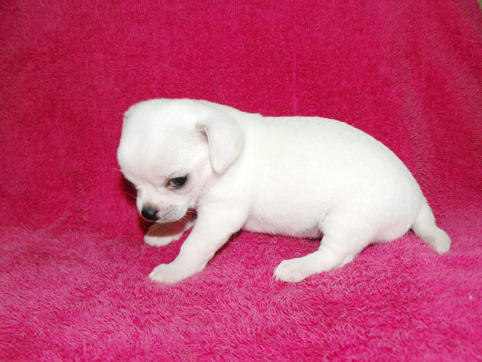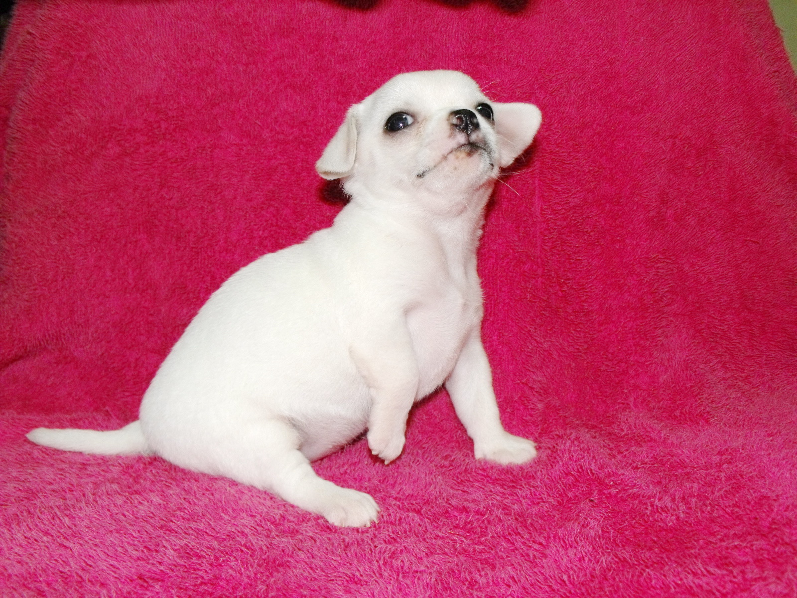 น้องชิวาวา เพศเมีย สีขาวล้วน ขนสั้นหนานุ่มมาก อายุเดือนกว่า สุขภาพสมบูรณ์แข็งแรง กินอาหารเม็ดได้แล้วน่ารักมาก ซุกซนตามวัย วัคซีน 1 เข็มและถ่ายพยาธิแล้ว น้องเป็นสุนัขบ้านครับเลี้ยงเองอย่างดี พ่อและแม่ของน้องเป็นสายพันธุ์ใต้หวันทั้งคู่ สายเลือดดี หัวโต ตาโต หน้าหักมาก น้องอยู่ราชบุรีกรุงเทพปริมณฑลและจังหวัดใกล้เคียงบริการส่งน้องให้ถึงบ้านครับ สนใจโทรสอบถามได้ตลอด 24 ชม 086-7508841 ไพโรจน์ ครับ