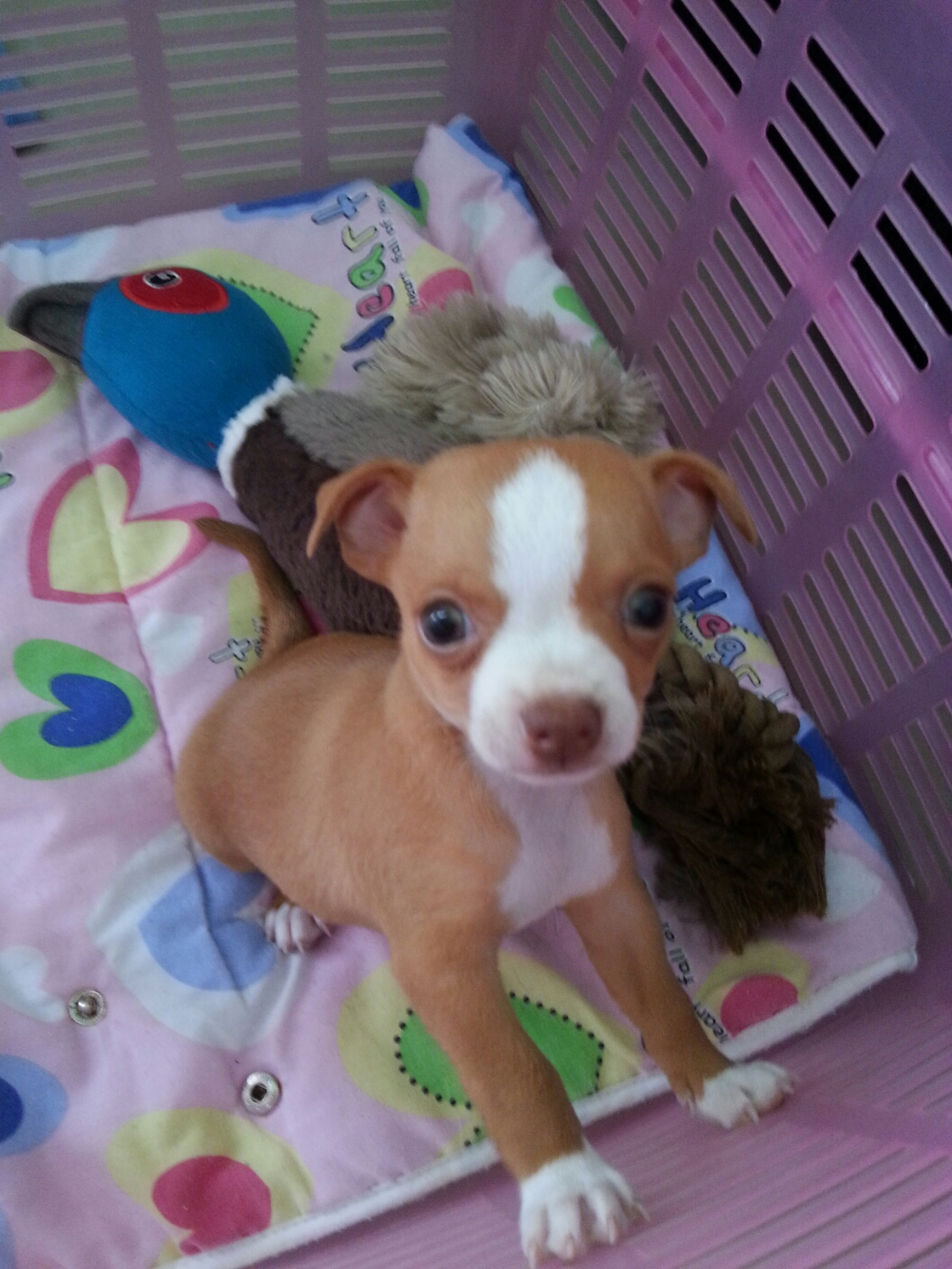 ขายลูกสุนัขพันธ์ชิวาวาขนสั้น พันธ์แท้ 100 % แฟนซี สี ขาว - น้ำตาล เพศผู้ อายุ 3 เดือน