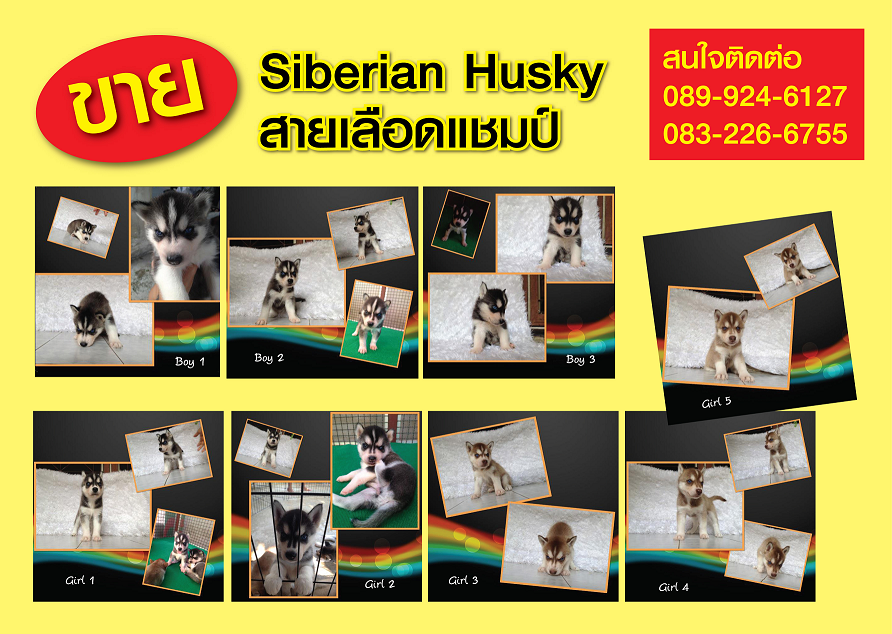 ขายไซบีเรียนมีใบเพ็ดโครงสร้างสวย หน้าสวย มีสีดำ สี Copper ตามีสีฟ้า สีเขียว เด็กๆอายุได้สองเดือนพร้อมย้ายบ้านครับ ตอนนี้ทุกตัวสามารถทานอาหารเม็ดได้แล้วให้กินอาหารเกรด super premium พ่อสี Copper แม่สีดำ ผู้ซื้อจะได้รับวัคซีนรวม ถ่ายพยาธิ สมุดวัคซีน และ ใบ Regis จากทางสมาคม เข้ามาดูน้องๆได้ตลอดครับ หรือสนใจจิงๆสามารถโทรมาต่อรองราคาได้ครับ มีราคาพิเศษสำหรับคนที่สนใจซื้อหลายตัวครับ โทร 0832266755 0899246127