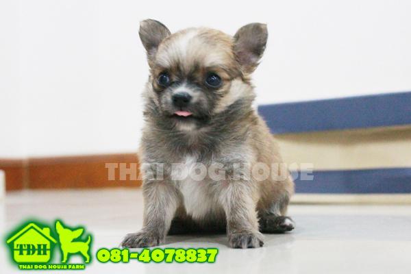ชิวาวาเพศชายขนยาวสายไต้หวัน สีน้ำตาลกระรอก หนุ่มหล่อหน้าหวาน