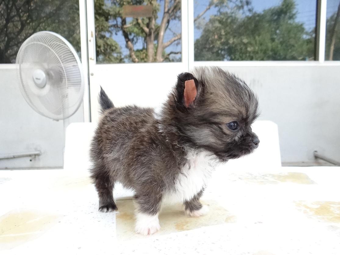 ขายน้องชิวาวาขนยาวเพศผู้ สีซ็อก ไซส์ทีคัพ แท้100% มีใบเพ็ดดีกรี สายเลือดดี วัคซีนเข็มแรกแล้วค่ะ