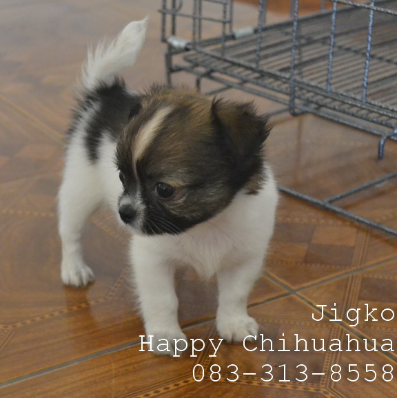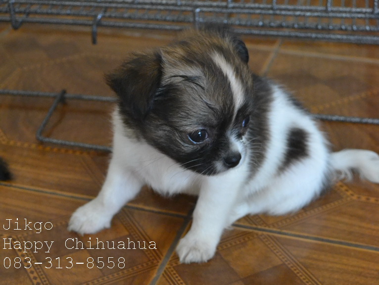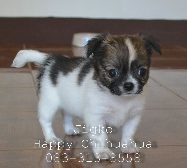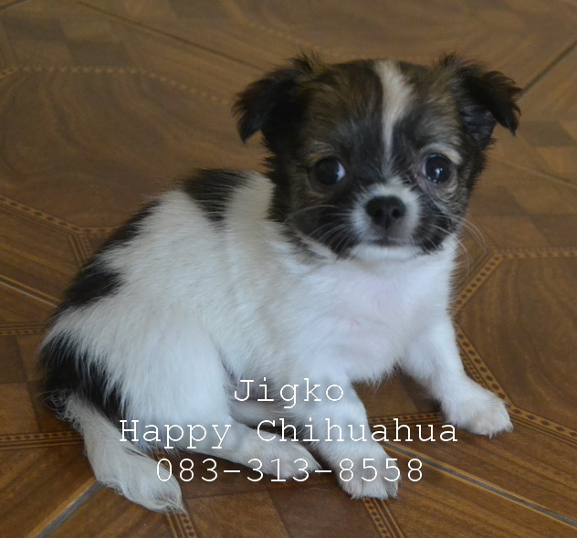 ขายชิวาว่าขนยาวเพศผู้ สีขาวแฟนซี สายเลือดดี มีใบเพ็ด